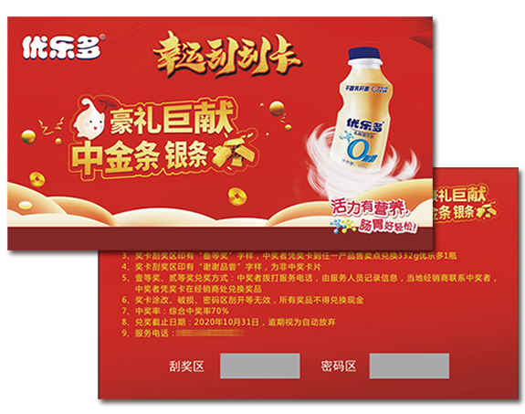 防偽:防偽油墨、噴獎項對應可變密碼數據